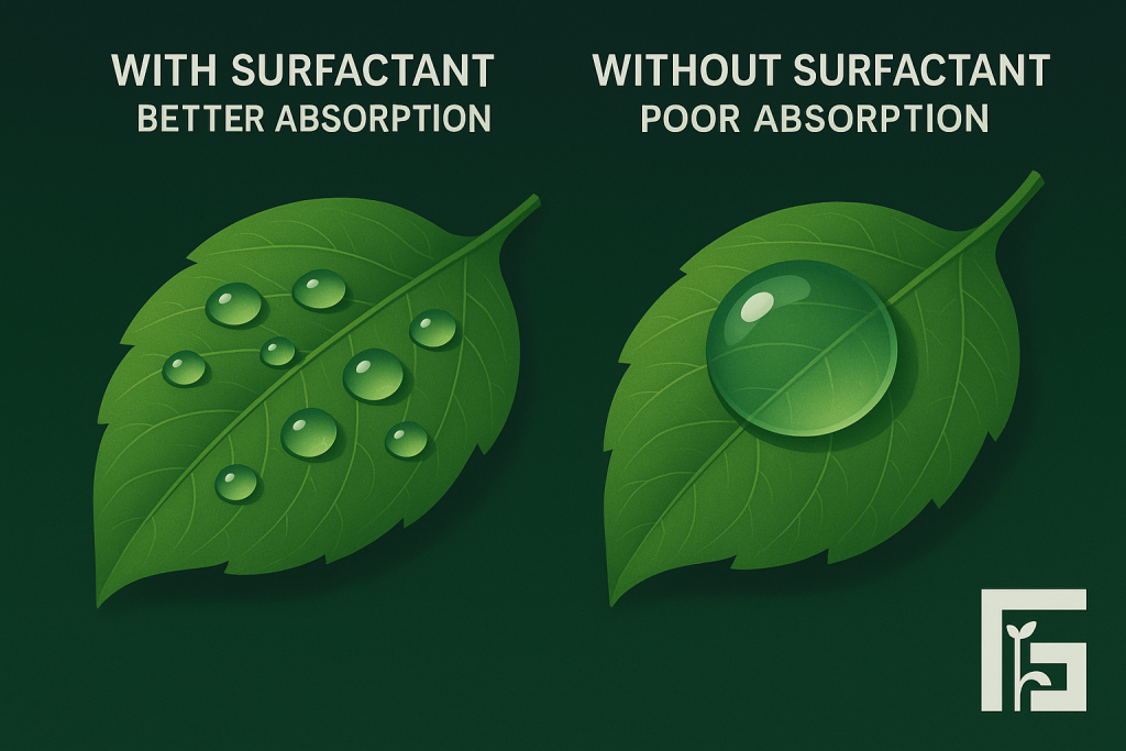 Surfactants reduce surface tension, allowing pesticide droplets to spread evenly on leaf surfaces rather than remaining as beads. This enhanced coverage improves penetration of active ingredients through the waxy cuticle, leading to greater biological efficacy. By optimizing distribution, surfactants help reduce chemical waste and environmental impact.