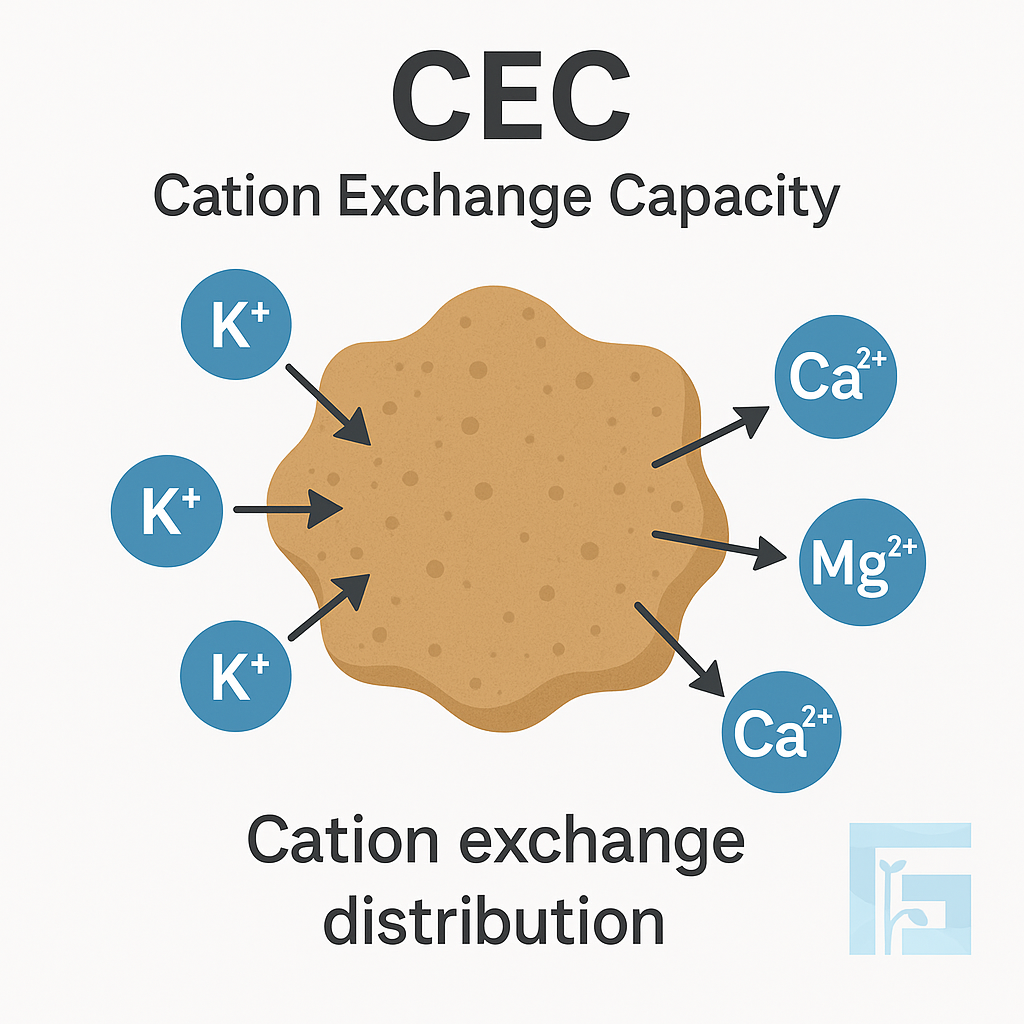 Cation Exchange Capacity (CEC) measures the soil’s ability to retain and supply positively charged nutrients such as potassium (K⁺), calcium (Ca²⁺), and magnesium (Mg²⁺). Soils with higher CEC act like nutrient reservoirs, supporting better fertility and buffering against nutrient losses. Understanding CEC helps farmers choose the right fertilizers and manage soil health more sustainably.