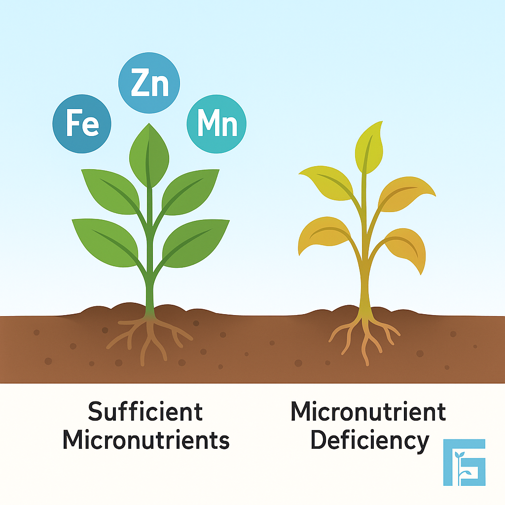 Micronutrients such as zinc (Zn), iron (Fe), manganese (Mn), and copper (Cu) are required in small amounts, but they play vital roles in enzyme activation, photosynthesis, and plant defense. Deficiency of these trace elements leads to chlorosis, stunted growth, and reduced yields, making balanced micronutrient management essential for sustainable agriculture.
