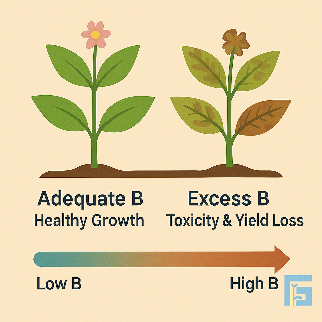 Boron (B) is essential for cell wall development, sugar transport, and reproductive growth in plants. Yet, when irrigation water contains high boron, it quickly turns toxic, causing leaf burn, chlorosis, and reduced yields. Careful monitoring is crucial, especially in arid and semi-arid regions.