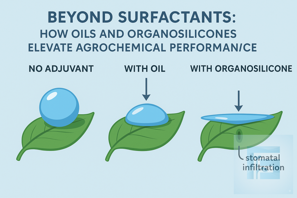Oils and organosilicone adjuvants increase droplet spreading, cuticular penetration, and overall deposition efficiency far beyond conventional surfactants. Organosilicones reduce surface tension to exceptionally low levels, enabling rapid stomatal infiltration and enhanced active ingredient uptake. These advanced adjuvants can significantly reduce spray volume while improving bioefficacy and uniformity.