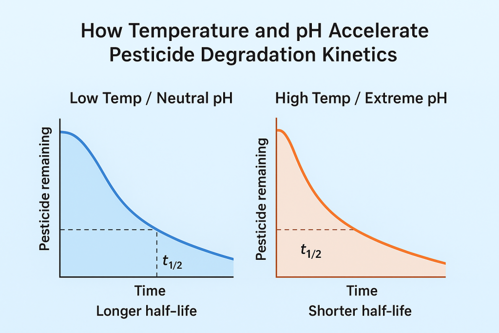 Temperature and pH significantly influence the hydrolysis and breakdown rate of many pesticides, often shortening their field half-life. Higher temperatures increase molecular motion, accelerating degradation, while extreme pH levels promote hydrolysis of sensitive active ingredients. Understanding these kinetic shifts helps optimize spray timing and preserve efficacy under variable environmental conditions.